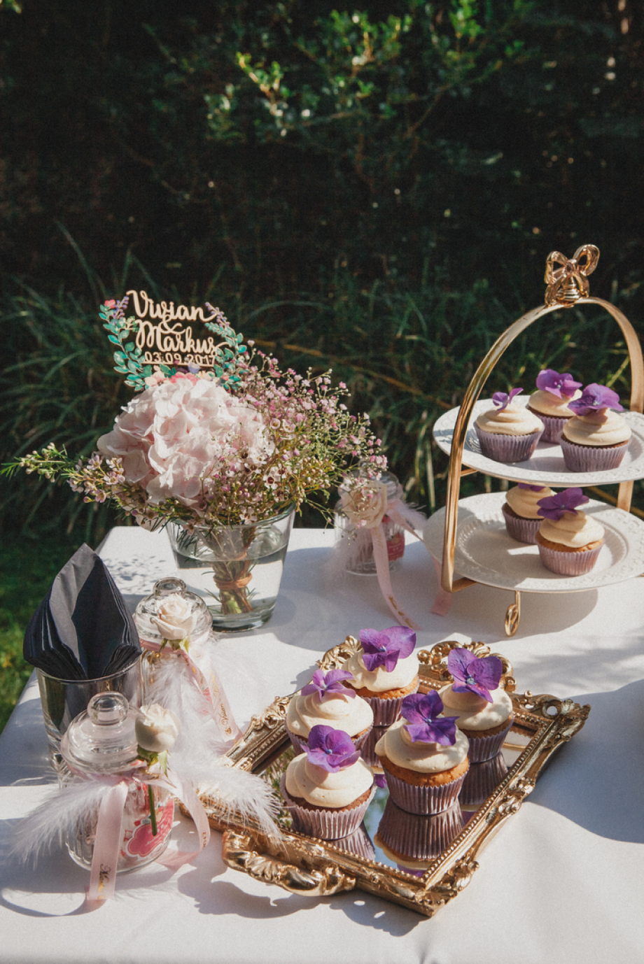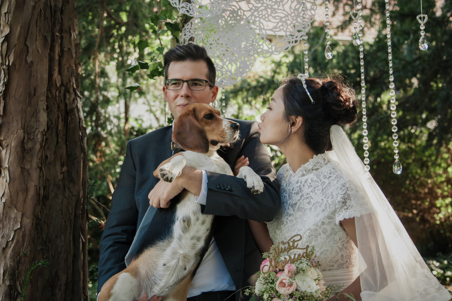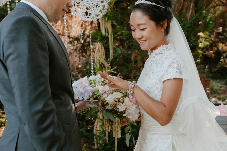 Mitten im Sommer, umgeben vom grünen Blätterdach eines Waldstücks, sagte dieses liebevolle Paar vor ihren engsten Familienmitgliedern und Freunden „Ja“. Diese Freie Trauung im Grünen war so unverstellt und echt wie die Verbindung der beiden selbst. Die Atmosphäre war von einer tiefen, harmonischen Freude geprägt – eine wirklich intime und persönliche Hochzeitsfeier, in der jedes Detail Viviens einzigartigen und raffinierten Geschmack widerspiegelte.